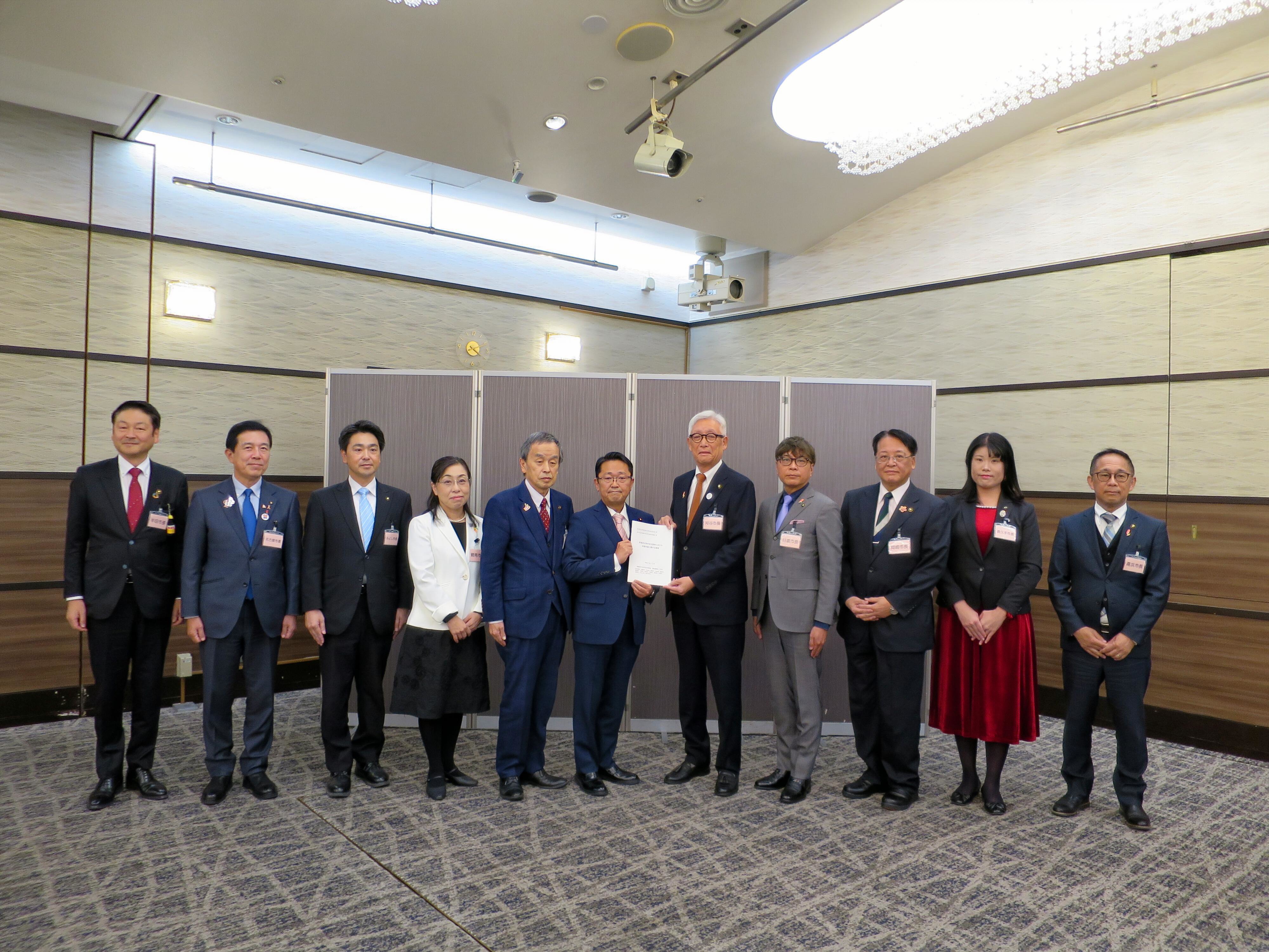 令和7年11月24日(月・振替休日)、アイリス愛知にて、稲垣刈谷市長始め愛知県の不交付団体15市(刈谷市、名古屋市、岡崎市、半田市、碧南市、豊田市、安城市、小牧市、東海市、大府市、高浜市、日進市、田原市、みよし市、長久手市)の市長連名により、普通交付税不交付団体における財源充実について、丹羽自由民主党愛知県支部連合会会長始め自由民主党愛知県連所属国会議員に要望書を提出しました。